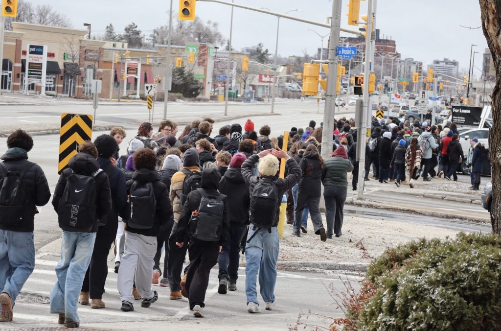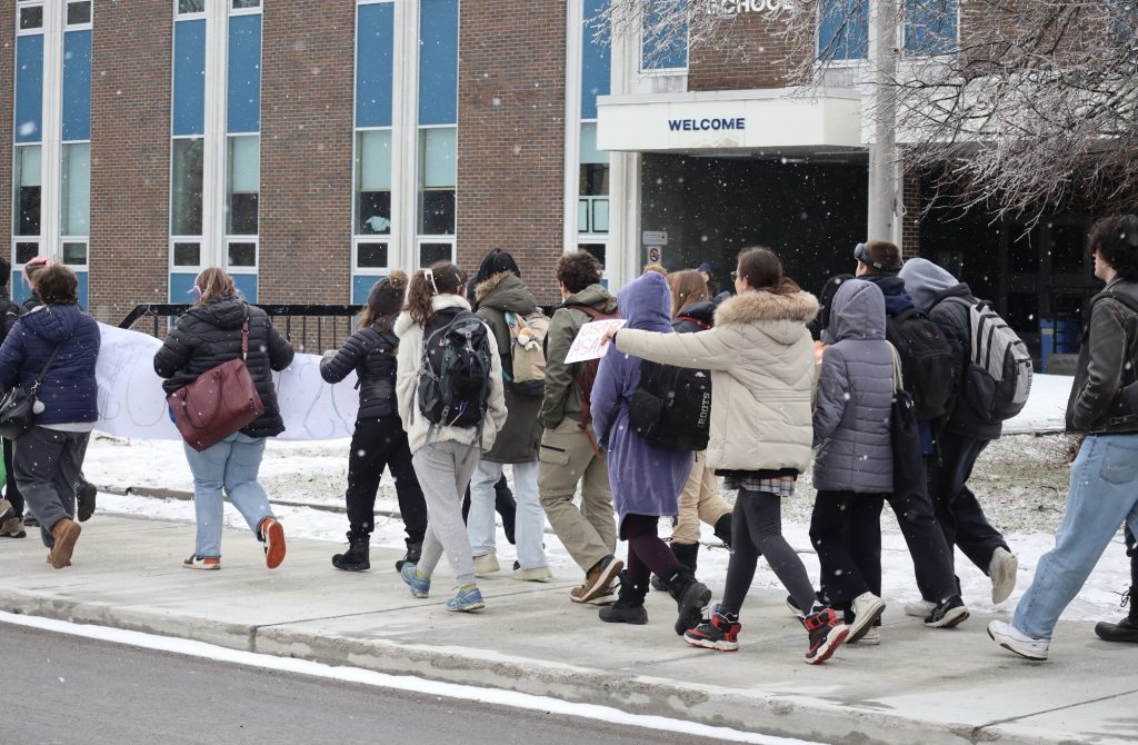 About 100 students from Nepean and Notre Dame High Schools staged a walkout on March 10, to protest changes to OSAP. Photo by Charlie Senack.