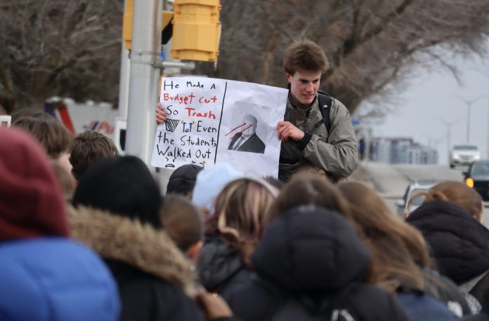 Soon after the afternoon bell rang on March 10, clusters of students began slipping out the doors of Nepean High School, holding signs to stage a walkout against sweeping changes they say will impact their future post-secondary education.