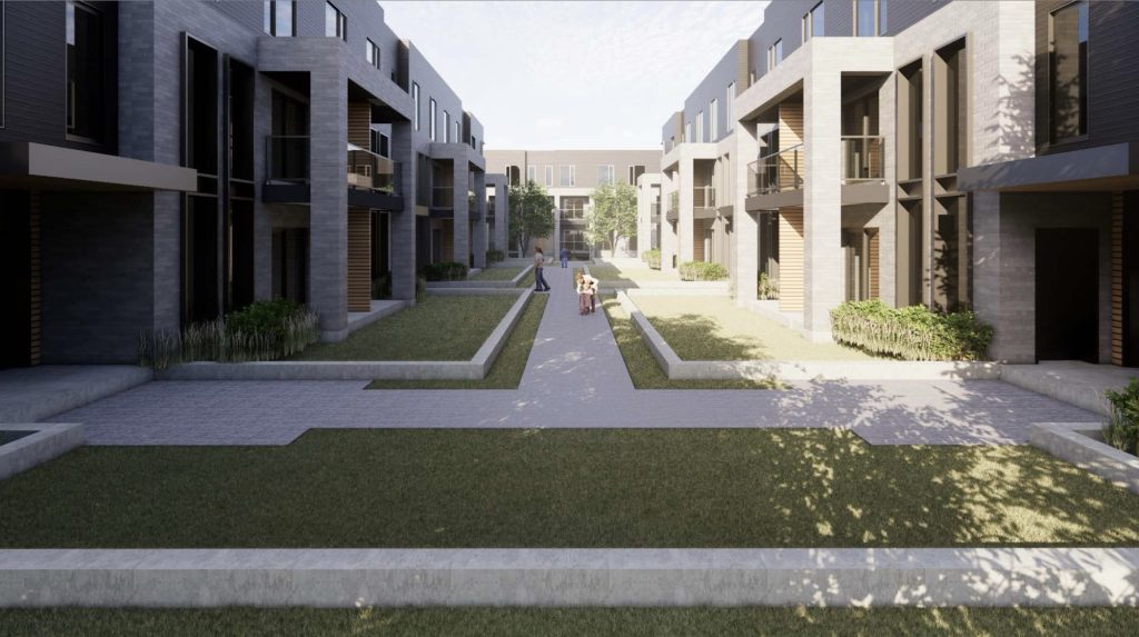 “The proposal by Concorde Properties would demolish roughly half of the existing convent building, restore the remaining portion, and see the construction of six stacked townhouse structures containing 126 units, along with a four-storey low-rise apartment building with 47 units,” wrote Leiper. “There would be 152 parking spots built in underground parking garages, accessed from Leighton Terrace.”