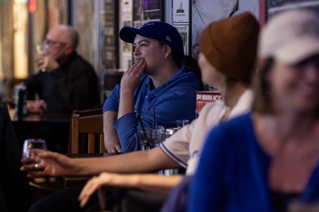 Rebecca Rayner watches game 4 of the World Series from Pubblico Eatery on Wellington Street in Ottawa on Tuesday, Oct. 28 2025. Keito Newman/Kitchissippi Times